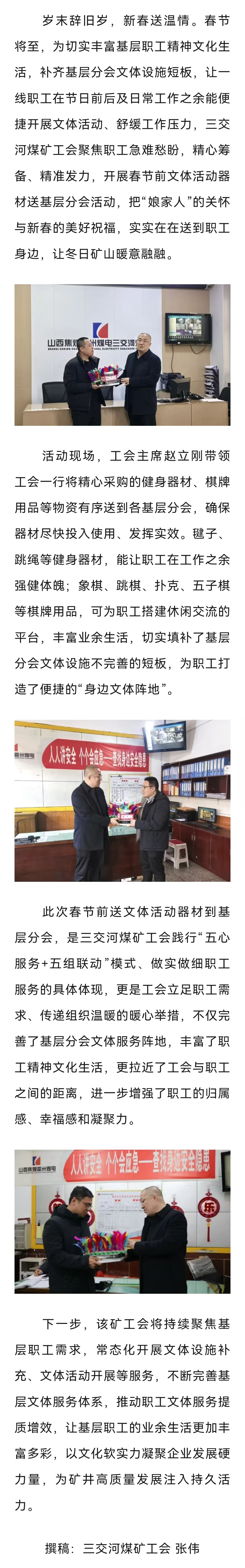 【基层动态】新春送器材 关怀暖基层——三交河煤矿工会节前暖心服务直达一线
