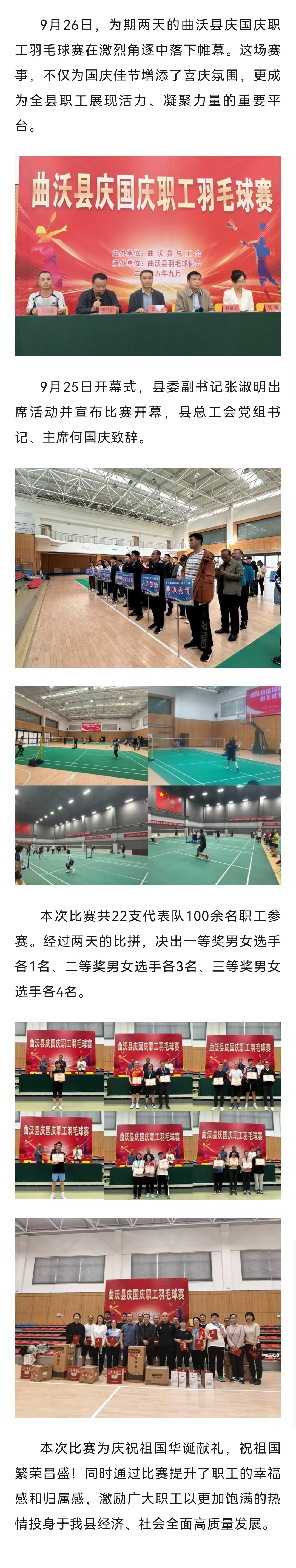 【区县动态】曲沃县庆国庆职工羽毛球赛圆满收官