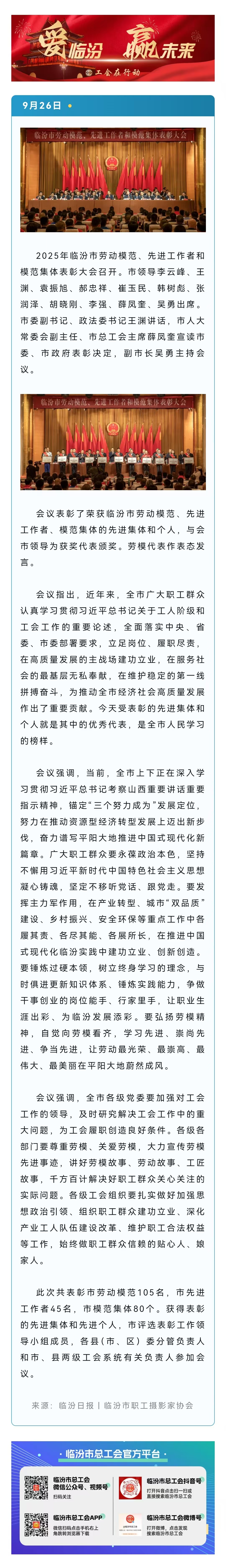 2025年临汾市劳动模范、先进工作者和模范集体表彰大会召开