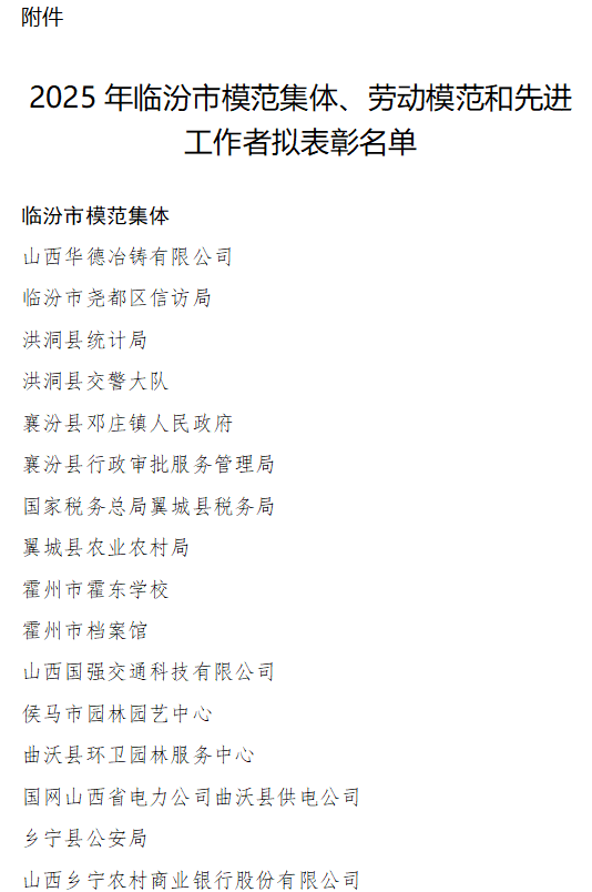 关于做好2025年临汾市劳动模范、先进工作者和模范集体评选表彰工作的通知